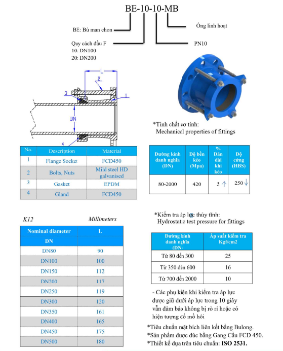 – Tiêu chuẩn mặt bích/ kết nối: Bulong