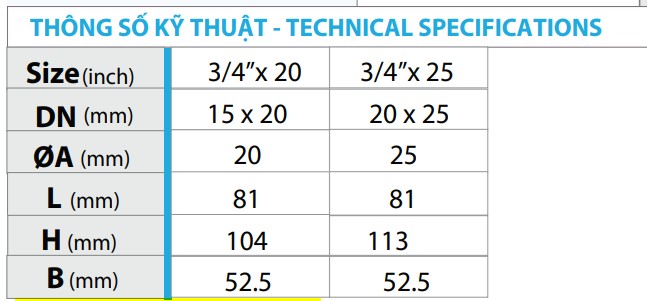 1. Thông số kỹ thuật van góc đồng liên hợp tay khoá MIHA
