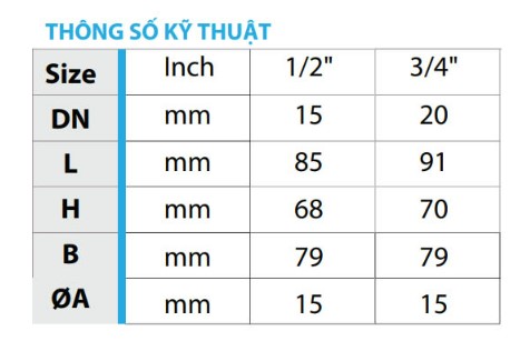 1. Thông số kỹ thuật vòi vườn đồng MH